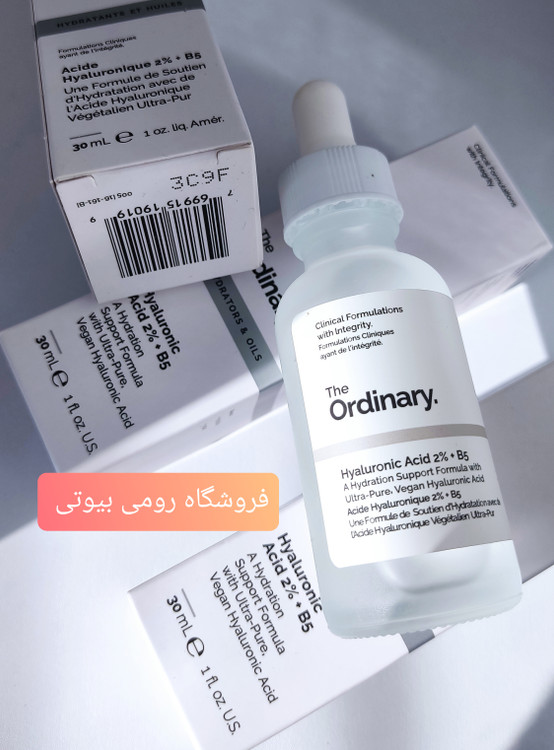 هیالورونیک اسید به طور طبیعی در پوست یافت می شود اما عملکرد طبیعی آن در پوست آبرسانی نیست .بسیاری از محصولات از HA برای ادعای مزایای هیدراتاسیون استفاده کردهاند. در فرمول سرم هیالورونیک اسید + 2% ویتامین B5 اوردینری از سه شکل HA با وزنهای مولکولی متفاوت و همچنین از یک پلیمر متقاطع HA استفاده میکند تا آبرسانی چند عمقی و حجیم شدن قابل مشاهده را بدون خروج آب از پوست تنها برای بهبود آبرسانی موقت سطحی ارائه دهد.